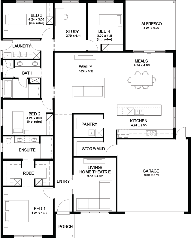 An efficient floorplan with ample storage space for unsurpassed levels of convenience and comfort. The laundry, butler’s pantry, store room and mud room have all joinery included.