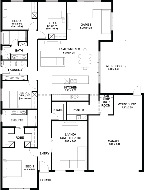 An efficient floorplan with ample storage space for unsurpassed levels of convenience and comfort. The laundry, butler’s pantry, store room and mud room have all joinery included.
